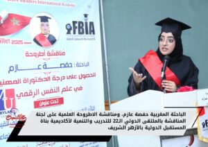ثم دارت عجلة الإنجاز الحقيقي، حين صعد ستة باحثين إلى منصات المناقشة، لا كطلاب علم، بل كرواد حملوا قضايا بلادهم على أكتافهم، وجاءوا ليحكوا علمهم ومجهودهم من خلال أطروحات دكتوراه شكّلت كل واحدة منها مشروعًا معرفيًا مبدعا قائمًا بذاته، من المغرب وخاصه من الدار البيضاء جاء الدكتور {بوشعيب درهمي } بأطروحته عن الديمقراطية والحقوق السياسية، ومن مدينه سلا المغربيه أضاءت الدكتورة {حفصة عازم }ببحثها حول التأثير النفسي للمؤثرين الرقميين، بينما قدّم الدكتور {منير شماريق} من مدينه جرسيف المغربيه دراسة جريئة عن التحولات في الطبقة العاملة بفعل التكنولوجيا.